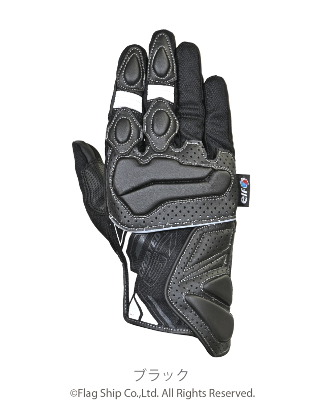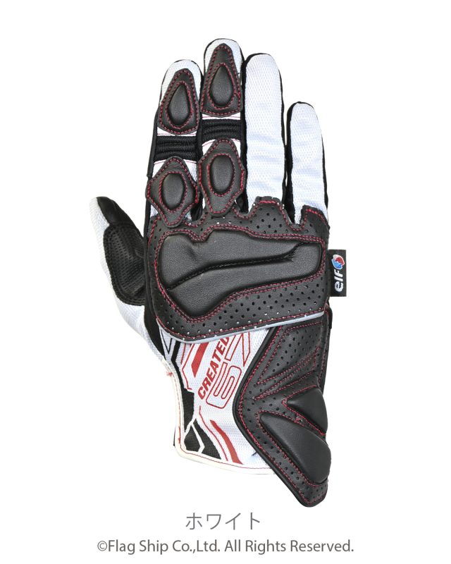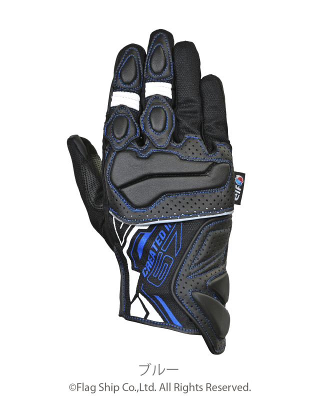 甲部に軽量なウレタン性フローティングナックルプロテクター(特許出願中)を採用。ハードプロテクターとは違った軽快な装着感を表現したグローブ。