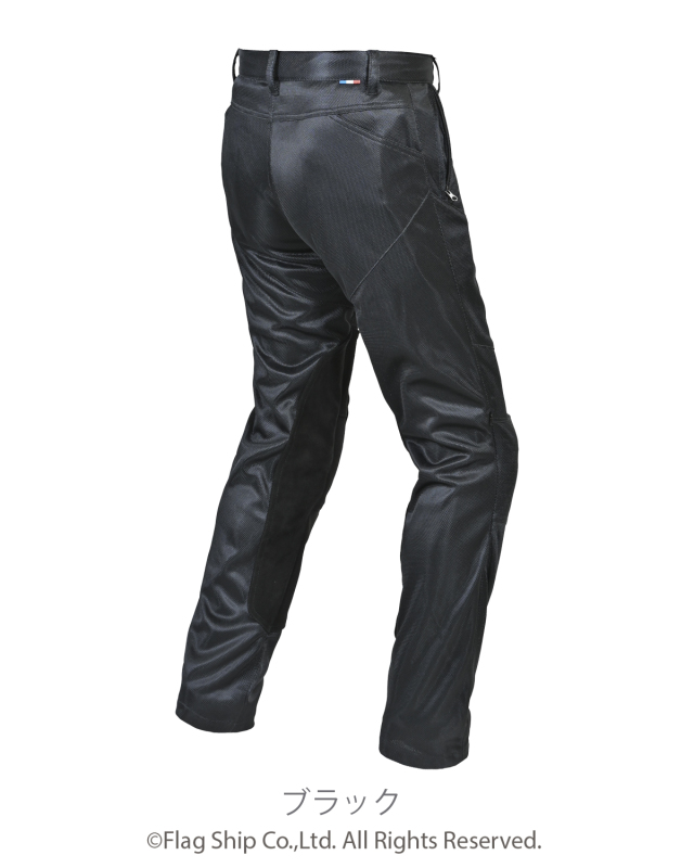 軽くしなやかなメッシュ生地を使いながらも、モモからスネの内側に耐熱ガードのカウスエードを使用。熱を防ぐだけではなく滑りにくいのでニーグリップも向上。膝のプロテクターは履いたまま縦横の位置調整が可能。