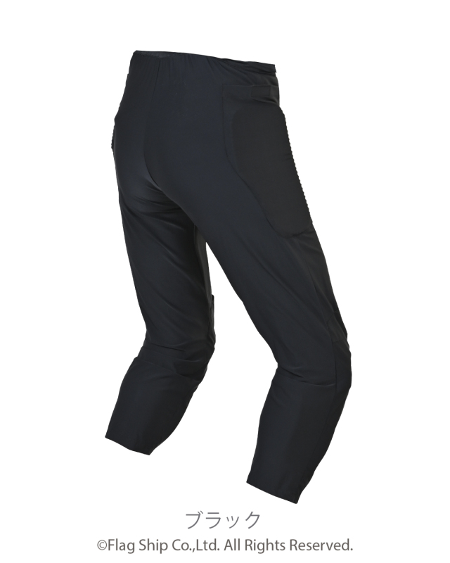 履いた瞬間にひやっと感じる接触冷感生地を採用。速乾性やストレッチ性にも優れ長時間のライディングでも快適に過ごせます。膝のプロテクターは位置調整可能。