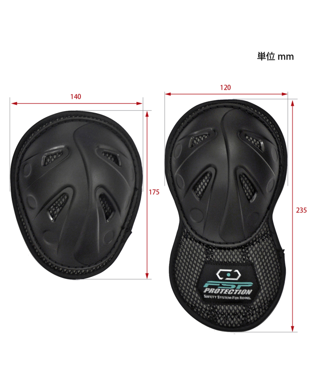 FLAGSHIP, ELF共通の肩肘オプションハードプロテクター。表面の硬質素材と裏面ウレタンの二層構造。